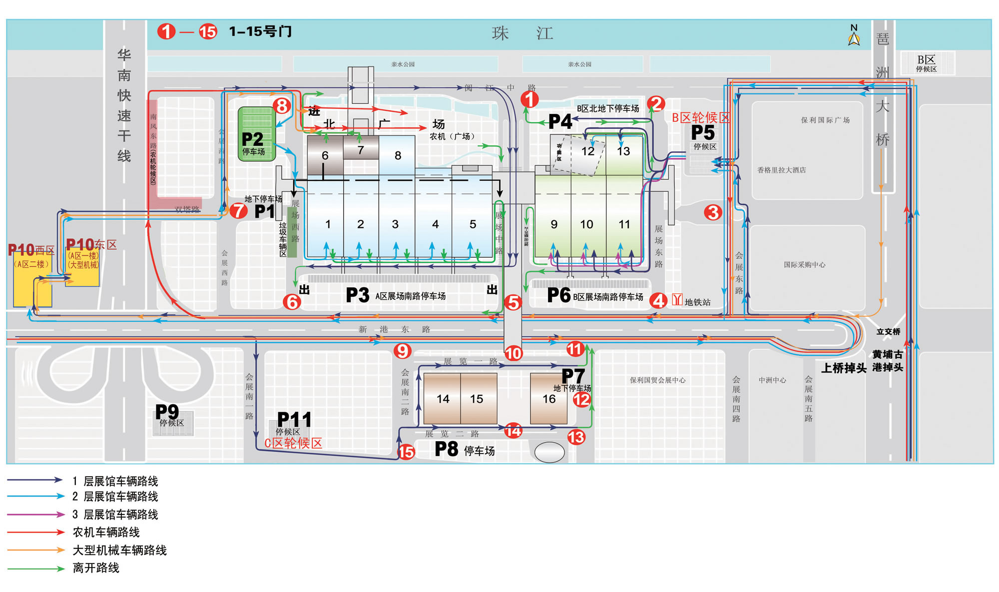 機場、廣州東站、廣州南站等各大交通樞紐均可乘坐地鐵直達展館,站點為8號線琶洲站A出口。